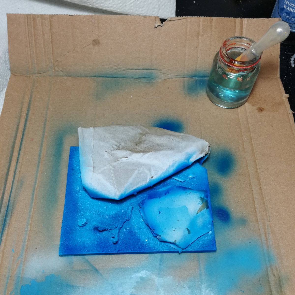 Cette résine peut se teinter également, ce que j'ai fait avec 2 gouttes de "Bleu France".